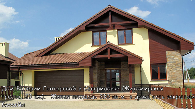 Гонтарева также владеет четырехсотметровым домом по улице Лесной,16 в Ирпене, а ее муж - квартирой на киевской улице Сорокалетия Октября.