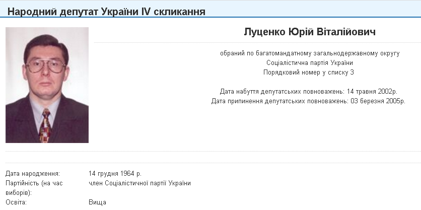 В 2002 году Юрий Луценко впервые был избран народным депутатом по списку СПУ, в котором занял почетное третье место: