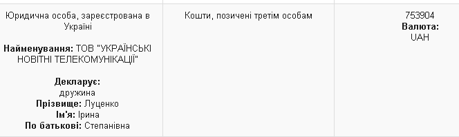Тем не менее, после продажи ООО "Украинские новейшие телекомуникации" осталось не чужой фирмой для семьи Луценко. В декларации за 2015 год Юрий Луценко отразил, что его жена получила от этой фирмы 20 тысяч гривен дохода: