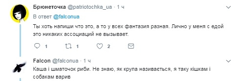 "Каша и кусочек рыбы. Не знаю, как крупа называется, я такую кошкам и собакам варил", - уточнил автор.