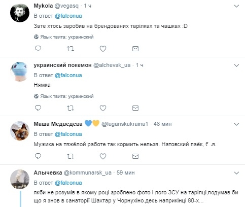 Фото ужина ВСУ опубликовал пользователь Falcon в микроблоге в Twitter.
