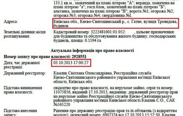 Его жена является владелицей садового дома площадью 221 м2 в селе Гатное, возле Киева.