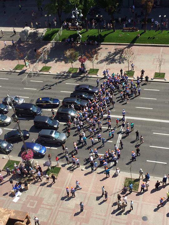 В знак протеста против увольнения парковщики перекрыли Крещатик напротив мэрии.