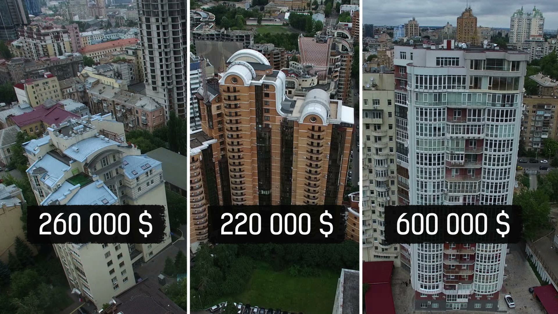 «Ціна ділянки — 600-620 тисяч доларів. Ціни на будинки дуже сильно відрізняються в залежності від матеріалів, які при будівництві використані, від ремонту... У середньому 2 або 2 з копійками тисяч доларів за метр. Ми порахували все разом — ділянка з будинком коштує не менше 3 мільйонів доларів».