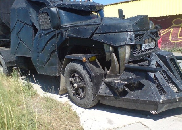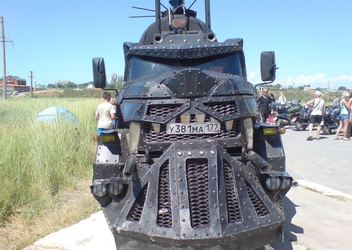 В пгт. Кирилловка Запорожской области привезли необычное авто, которое некоторые называли "бронепоездом", другие считали, что это машина из серии фильмов о "Безумном Максе".