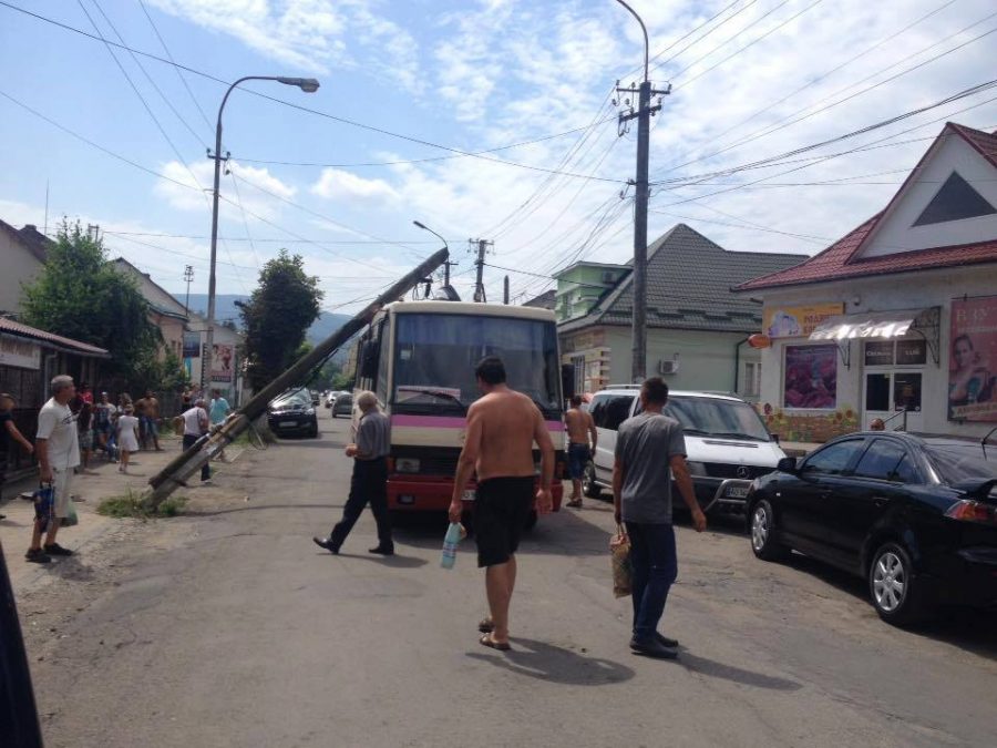 По данным СМИ, «укртелекомовский» столб упал прямо на рейсовый автобус «Ростока — Мукачево» после полудня в субботу