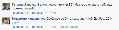 «Слава нашим Вохдушным силам!» - написал на своей странице в Facebook президент Украины Петр Порошенко.