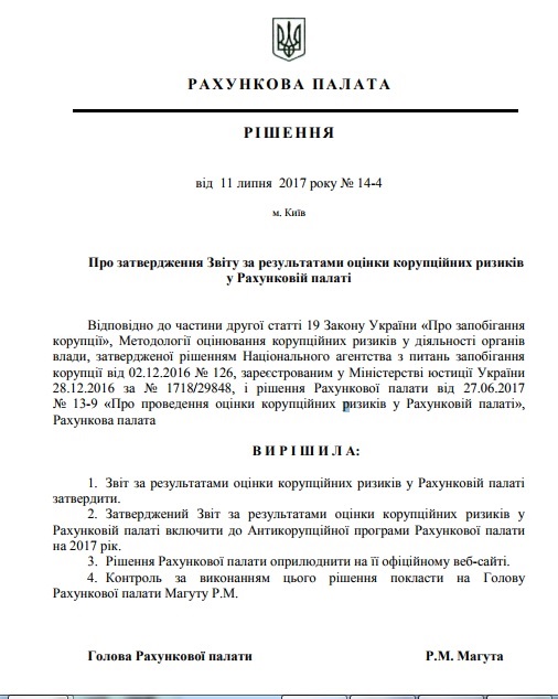 Глава Рахункової палати України Роман Магута, ключової структури держави, яка забезпечує контроль над цільовим використанням державного бюджету, з ближнього оточення сім’ї Януковича і мінфіна Арбузова. Магута загруз в корупційних схемах, однак як і раніше очолює стратегічний об’єкт, який знаходиться в режимі суворої секретності.