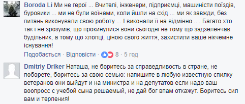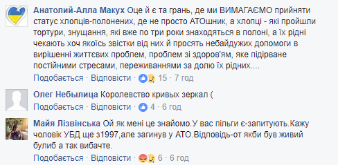 «Сейчас мой сын поступает, на ту специальность, которую он хочет, он не дотягивает по баллам, чтобы пройти на бюджет, то есть только контракт. Но суть не в этом, не в деньгах, а в том, что мне обидно, что мой муж, как нам сказали, просто участник АТО, и его дети не имеют особых преимуществ! Так вот, что я хочу сказать: мой муж не просто участник АТО! Мой муж в плену уже второй год, и его дети тоже! Он априори не просто участник АТО! И вопрос не в деньгах, а в том, что у нас "нет войны", и нет пленных! По ходу это только у нас, у всех остальных все хорошо! Господи, верните мне мужа, детям отца, и мне ничего не надо будет! Но пока он там, он никак не может быть обычным АТОшником!» - рассказала женщина.