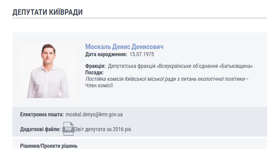 Строительный бизнес в Украине, как известно, невозможен без политического прикрытия. На внеочередных выборах в Киевский городской совет в мае 2008 года Денис Москаль был избран депутатом от блока Юлии Тимошенко. В сентябре 2010 17 депутатов избрали его председателем фракции БЮТ в городском совете, однако глава БЮТ Юлия Тимошенко заявила, что легитимным представителем блока является Татьяна Мелихова, а Москаль «отрейдерил» партию. После раскола оказалось, что на сторону Москаля действительно стало больше половины фракции – 18 из 32. В ноябре 2010 г. Москаль вместе с несколькими депутатами вышел из фракции БЮТ и создал новую группу в Киевсовете – «Республика Киев», которая нашла общий язык с Партией регионов. Позже Москаль возглавлял Партию зелёных Украины, а в 2014 г., после смены власти, примкнул к Блоку Петра Порошенко, став кандидатом от БПП на выборах в ВР на округе 191 в Хмельницкой области. Однако выборы он в итоге проиграл и в 2015 г решил вернуться к «истокам», избравшись в Киевсовет от «Батькивщины» Юлии Тимошенко. Сколько ценных аргументов ему пришлось потратить на это, достоверно неизвестно, но факт остается фактом – Москаль пока остаётся депутатом от «Батькивщины» и входит в свою любимую комиссию по вопросам экологической политики.