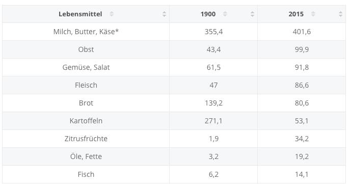 Теперь посмотрим на статистику потребления продуктов питания в Германии.