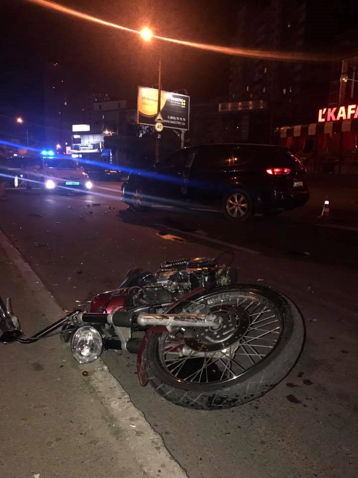 В Киеве мотоциклист, пострадавший в столкновении с внедорожником сотрудника полиции, находится в больнице в тяжелом состоянии. Начальника Нацполиции Сергея Князева призывают взять расследование данного ДТП под свой контороль.