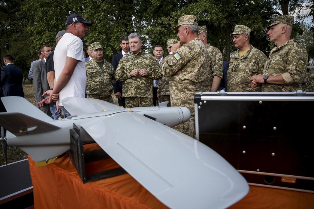 Президенту Украины Петру Порошенко во время посещения одной из воинских частей Вооруженных сил Украины в Кировоградской области продемонстрировали образцы новых беспилотников.