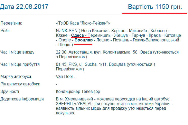 Судя по опубликованным фото, не только Оксане "повезло" ехать стоя в этом автобусе. Отметим, что согласно данным сайта reis.ua, автобус из Одессы во Вроцлава едет более 27 часов, а билет стоит 1150 грн.