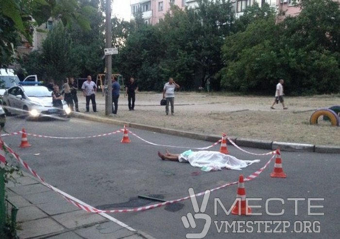 В сети появились фотографии с места нелепого убийства председателя ОСМД в Запорожье