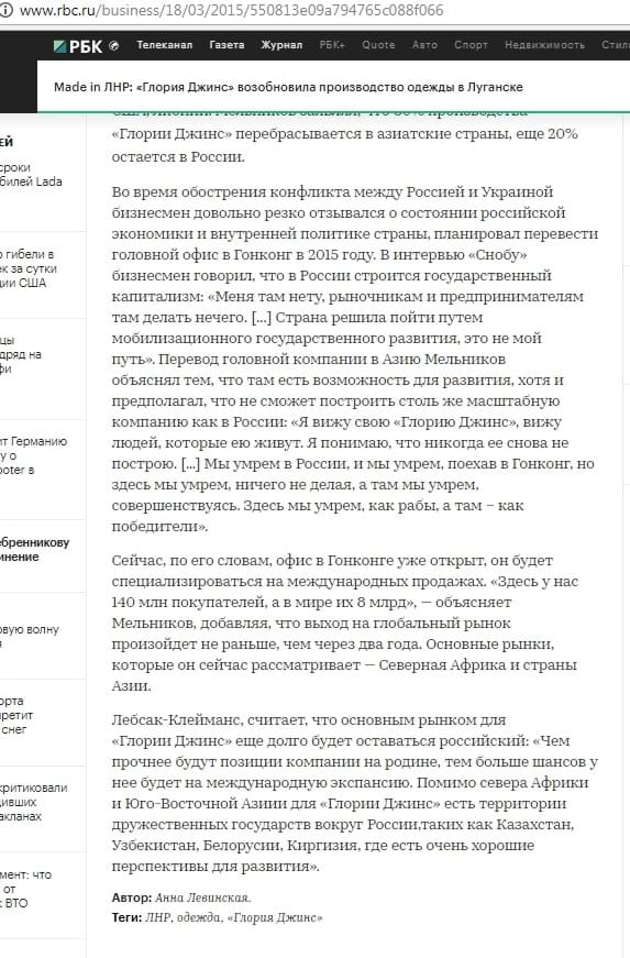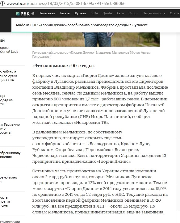 Теги: Глория ДжинсМельников ВладимирСайт Миротворецторговля с оккупантомЛНР