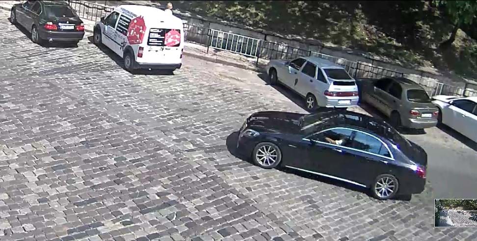 Так, кортеж Дыминского выехал от Львовской ОГА, где расположен офис ФК "Карпаты", в 14:29. За рулем автомобиля Mercedes S 65 AMG с государственным номерным знаком АС0277ВР видно мужчину в белой рубашке с коротким рукавом.