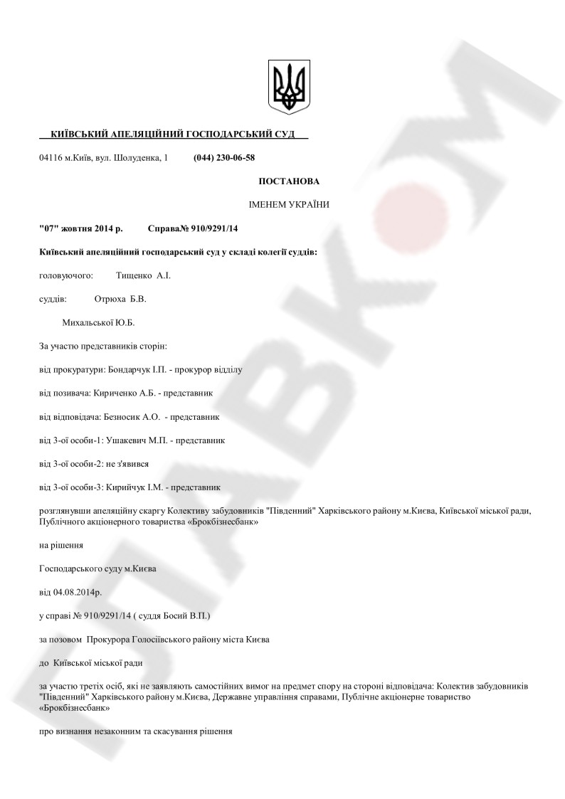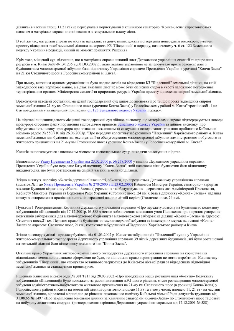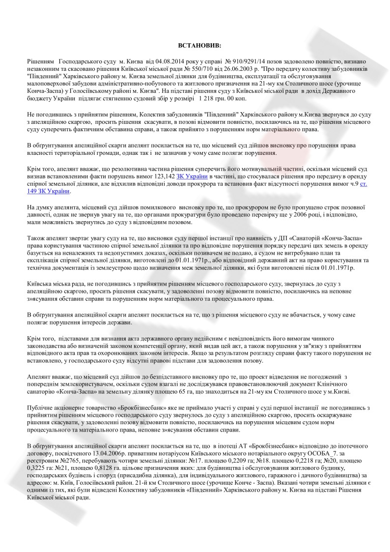Формально это звучало как передача коллективу застройщиков «Южный» земель запаса для строительства и эксплуатации малоэтажной жилой застройки на 21-м км Столичного шоссе (урочище Конча-Заспа).