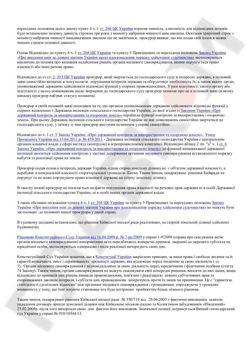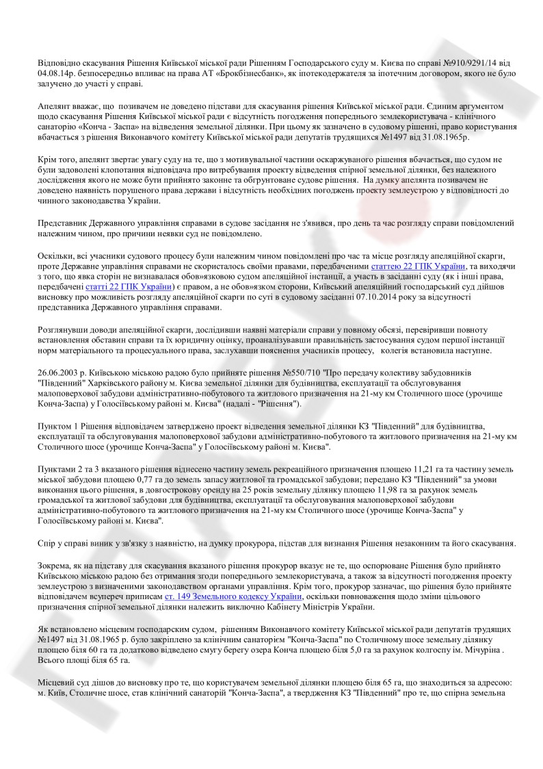 В августе «черную полосу» регионала расширил Хозсуд Киева. Он пришел к выводу, что доводы прокуратуры о нарушении Земельного кодекса при выделении земли под коллективную застройку в Конча-Заспе – обоснованы. Решение столичных властей десятилетней давности было признано незаконным. Участок следовало вернуть киевской общине.