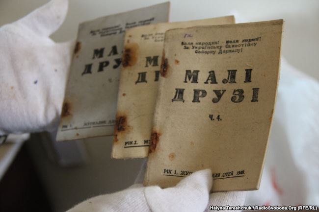 Вперше віднайдені і передані у музей кілька номерів дитячого підпільного ілюстрованого журналу «Малі друзі», 1948 року видання. У ньому вірші для дітей, оповідання, загадки, і навіть ігри, але історичного змісту, написано для сприйняття дитиною. Дітям нагадують «говорім рідною мовою». На обкладинці написано «журнал для дітей» і вгорі гасло — «Воля народам! Воля людині! За Українську Самостійну Соборну Державу!». Це було гасло видання, коли у 1947–1948 роках журнал для української дітвори видавали українці в таборі для переміщених осіб у Німеччині. До Другої світової війни він виходив у Львові, в роки війни, в 1940–1944 роки, у Кракові.