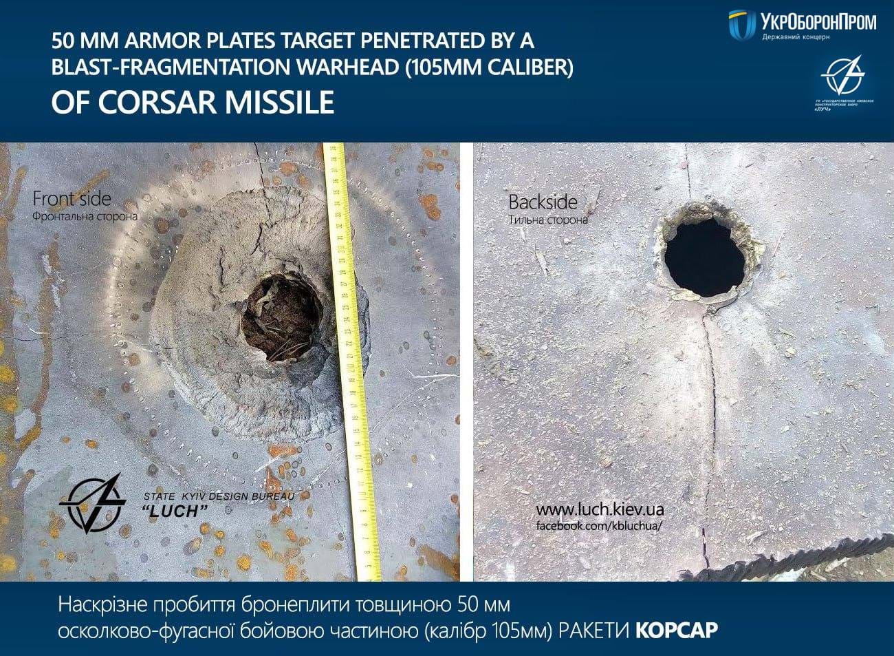 «Корсар» позволяет вести огонь на дистанции 2,5 км (аналогичная дальность у американского FGM-148 Javelin), а наведение ракеты осуществляется с помощью лазерного луча. При этом наведение проходит в низко энергетическом уровне излучения в целях скрытности канала управления», — пояснили в «Укроборонпроме».
