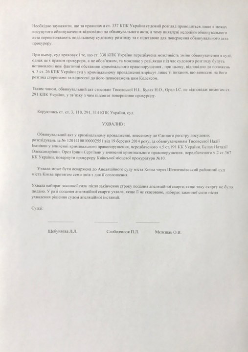 Обычный украинский гражданин подумал бы, что в такой безвыходной ситуации госпоже Тисовской ничего не остается, как нести уголовную ответственность за совершенные преступления.