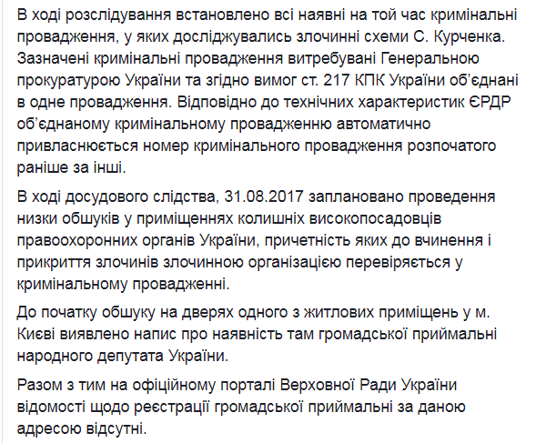 "В связи с тем, что в уголовном производстве в настоящее время отсутствуют сведения о причастности упомянутого народного депутата к преступлениям, обыск в помещении партийной организации не проводился", - сообщили в Генпрокуратуре.
