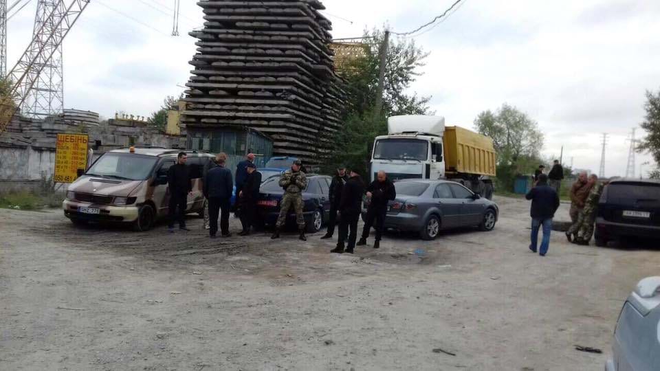 В Киеве общественная организация с названием "Майдан" приехала в район станции метро Выдубичи, чтобы разблокировать крупнейшую нелегальную точку добычи песка.