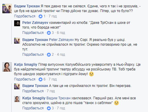 Украинские пользователи в соцсети также активно обсуждают данное видео, которое оказалось тонким троллингом Путина. Некоторые люди в комментариях даже подчеркнули, что не сразу поняли, что речь политолога не выражает его настоящие мысли.