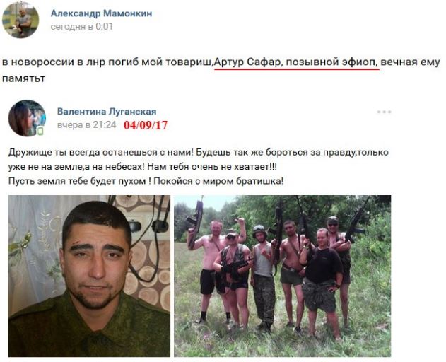 Согласно данным ресурса «Миротворец», настоящее имя погибшего Артур Александрович Сафар, он родился 05.02.1984.