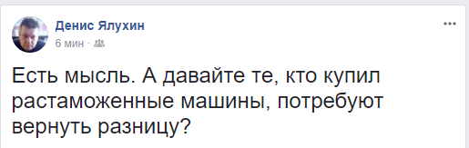 Журналист Денис Ялухин предлагает: "А давайте те, кто купил растаможенные машины, потребуют вернуть разницу?"