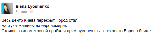 Елена Льошенко, адвокат, стоя в пробке, отметила: "прям чувствуешь насколько Европа ближе".