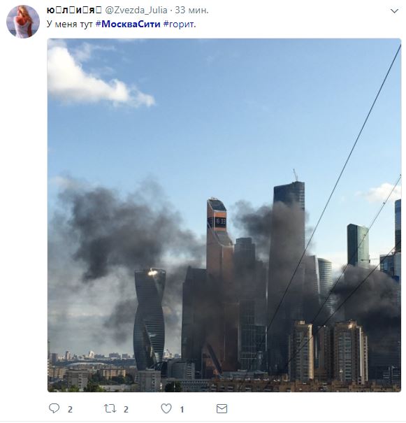 В Москве на день города начался мощный пожар в деловом центре "Москва-сити"