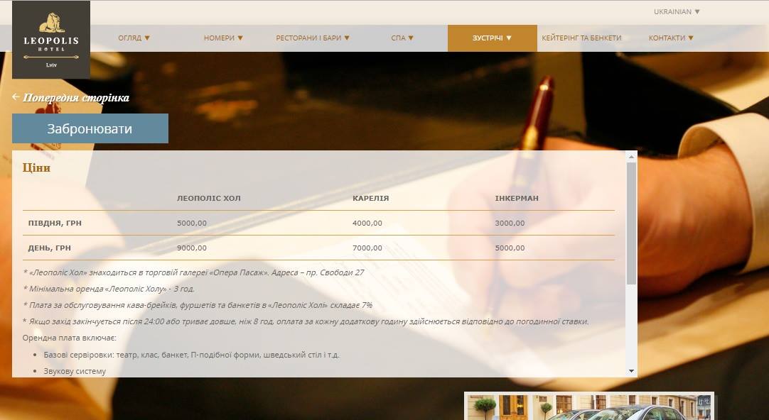 Ціни на номери в готелі стартують від шести тисяч гривень за найскромніший номер. Найдорожчі апартаменти – представницький люкс – коштує від 12 тисяч гривень в залежності від умов розміщення. Готель розташований у центрі міста, на вулиці Театральній.