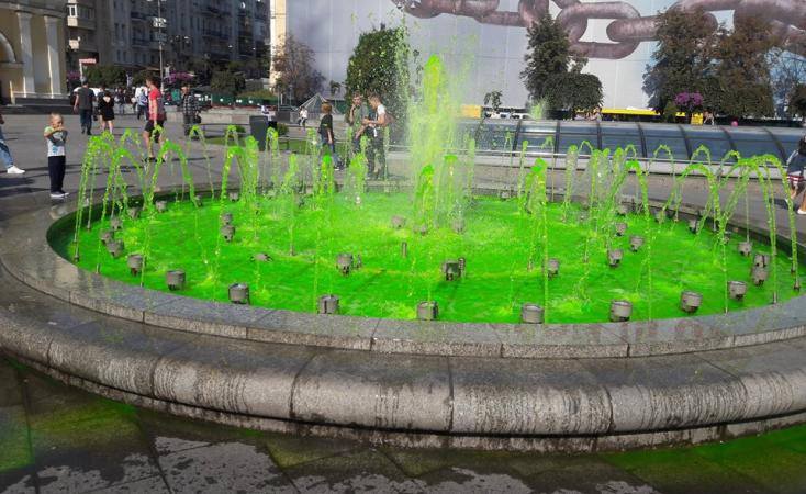 Но уже 12 сентября фонтаны на Майдане снова позеленели.