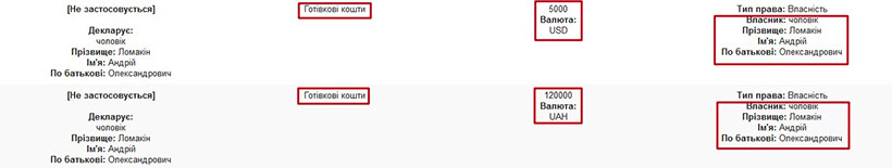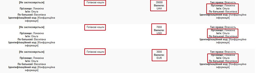 Низькі доходи не завадили батькам Оксани Ломакіної заощадити досить великі суми. Ольга Василівна Ломакіна задекларувала 39 тис. грн, 7 тис. дол та 3 тис. євро готівкою. Її чоловік теж не довіряє банкам та зберігає 5 тис. дол та 120 тис. грн.