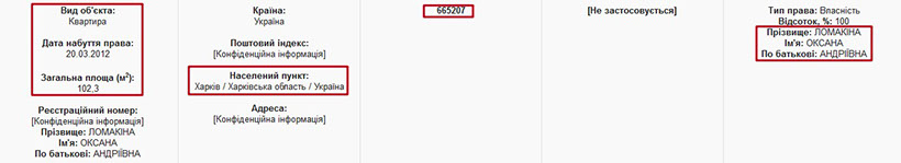 Також Оксана Андріївна має 1/3 квартири на 116 м². Іншими власниками квартири є батьки прокурора. За нашою інформацією, ця квартира розташована в Харкові, на вулиці Броненосця Потьомкіна, 1-Б.