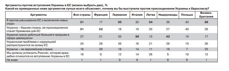 Основные аргументы европейцев против вступления Украины в ЕС — это ее бедность, недостаточная демократичность и коррупция. Около трети респондентов заявили, что против расширения ЕС в принципе.