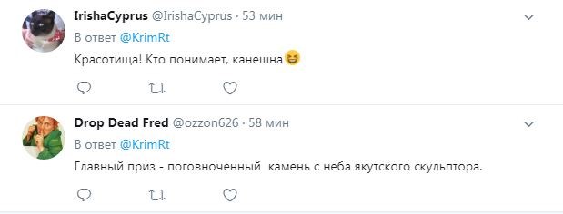 "Головний приз - поговноченний камінь з неба якутського скульптора", - написав він.
