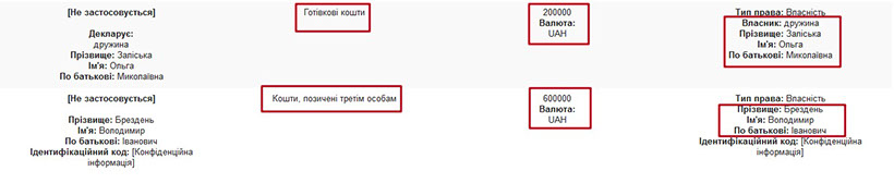 Незважаючи на значні витрати для придбання майна, родині прокурора вдалося заощадити значну суму. Сам прокурор має готівкою 200 тис. грн та ще 30 тис. дол. Окрім того, Володимир Брездень позичив невідомим особам 600 тис. грн. Ще 200 тис. грн готівкою має його дружина.