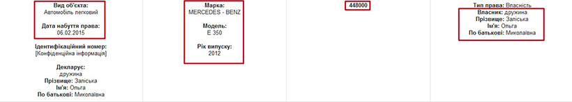 Усе рухоме майно теж перебуває у власності членів родини прокурора. Зокрема його дружина володіє Mercedes – Benz E350 2012 року випуску, який вона придбала у 2015 році. Вказана вартість авто – 448 тис. грн.