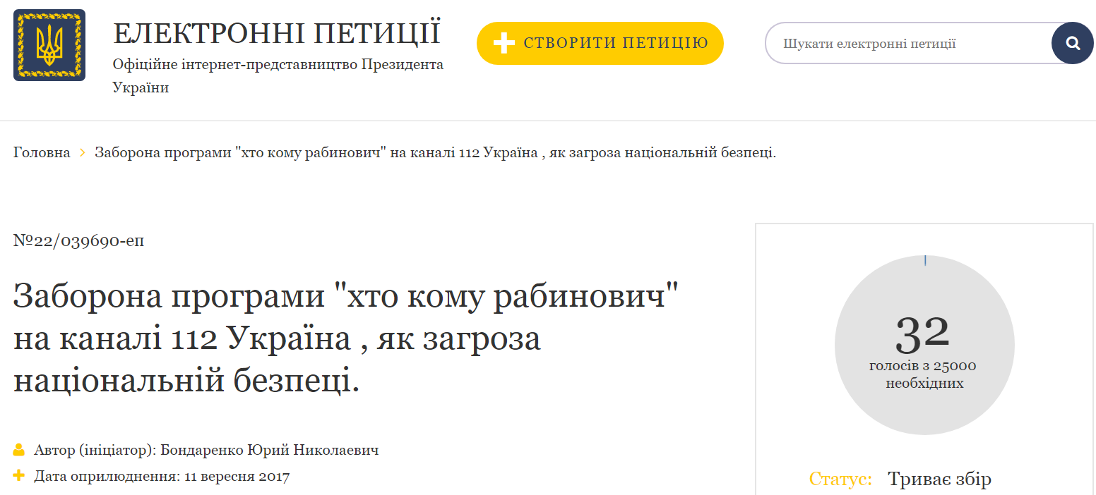 Теги: ВластьЭлектронные петиции112 УкраинаПартия За життяРабинович Вадим