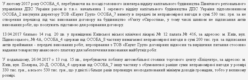 После передачи второго транша фигурантов задержали. Однако сразу после задержания Печерский суд отказался арестовать получателя взятки, и отпустил его под залог 320 тысяч гривен.