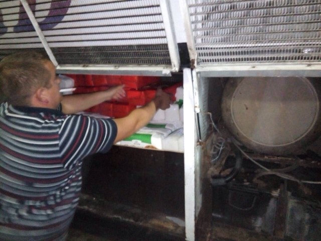 За результатами огляду транспортного засобу в конструктивних особливостях верхньої частини салону, призначених для освітлювальних приладів і вентиляції, та за радіатором охолодження і в багажному відсіку, правоохоронці виявили сири різних марок загальною вагою майже 540 кілограм.