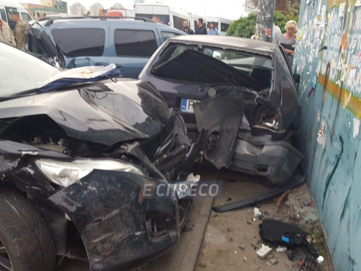 Как сообщает Эспрессо, водитель «КамАЗа», двигавшийся в правой полосе дороги не успел среагировать на автомобиль Toyota, с которым совершил столкновение. После чего уже неуправляемая Toyota, которую протащило еще 15 метров, на своем пути развернула Hyundai Accent, стукнула Volkswagen и зажала к МАФу водителя Hyundai Accent, который стоял на обочине. Далее неуправляемый Volkswagen ударил Renault Logan, который, в свою очередь, задел припаркованный Mersedes. Кроме того, Hyundai также сдвинул с места кофейню, которая стояла на обочине.