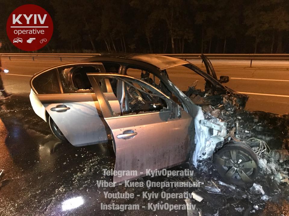 События разворачивались так. Между автозаправкой Shell и поселком Корчеватое водитель автомобиля BMW (госномер AA6999OA) на огромной скорости мчался в сторону выезда из Киева и, не доезжая около 100 метров до АЗС, на скорости "под 200 км/ч" врезался в заднюю часть автомобиля Chevrolet (госномер CA3182AO). Так утверждают свидетели происшествия.
