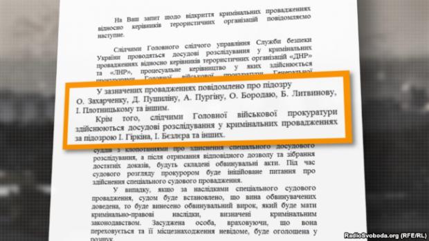 Тим часом Генпрокуратура України проводить слідство щодо цілої низки одіозних бойовиків – в українські суди передадуть справи проти Захарченка, Гіркіна, Пушиліна та інших.