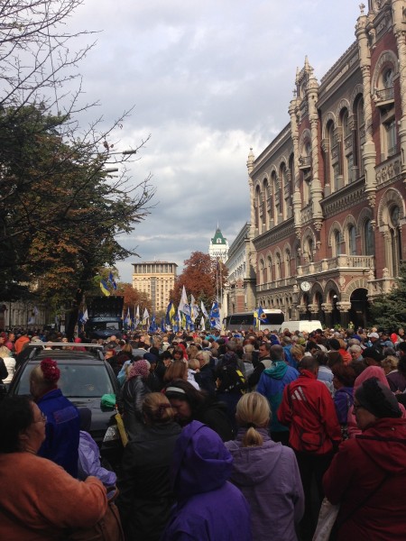 Вуличні акції відбуваються в урядовому кварталі щодня. Не перший місяць з перервою на літо національного регулятора з боку Інститутської осаджує купа людей під прапорами "За Життя!" - політичної сили Вадима Рабиновича і регіоналівського "молодого дарованія" Євгена Мураєва. Вони експлуатують тему «обдурених вкладників». Це абсолютні лідери мітингування.
