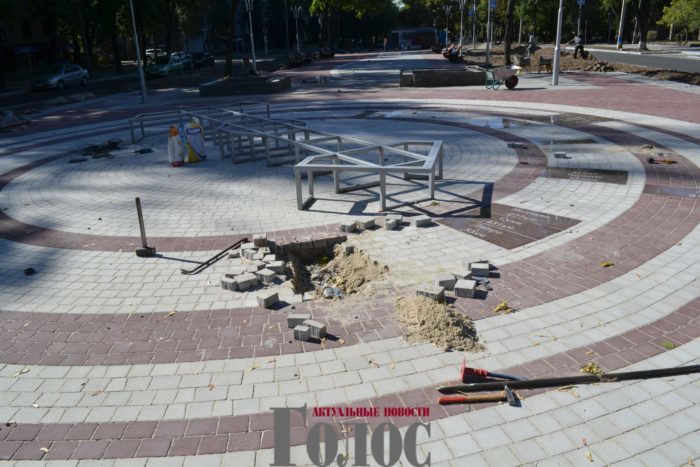В Запорожье отреставрированную площадь Маяковского украсили указателем дорог в виде компаса, на котором были неправильно написаны украинские города.