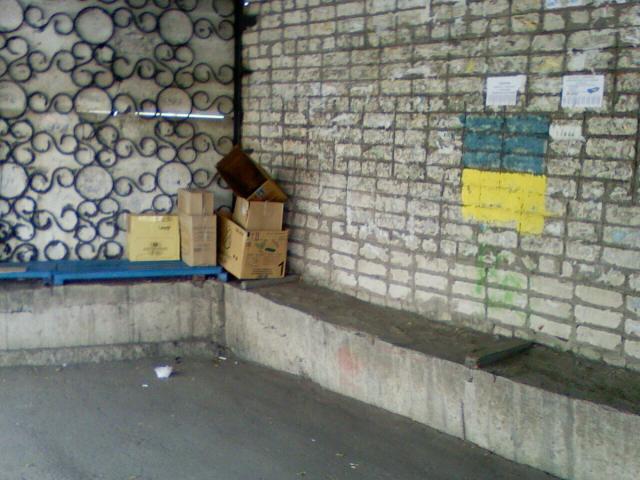 В частности, флаг был нарисован на одной из остановок общественного транспорта. «Остановка „Городская поликлиника“, 27.09.17 г.», — пишет очевидец, прилагая соответствующие фото.